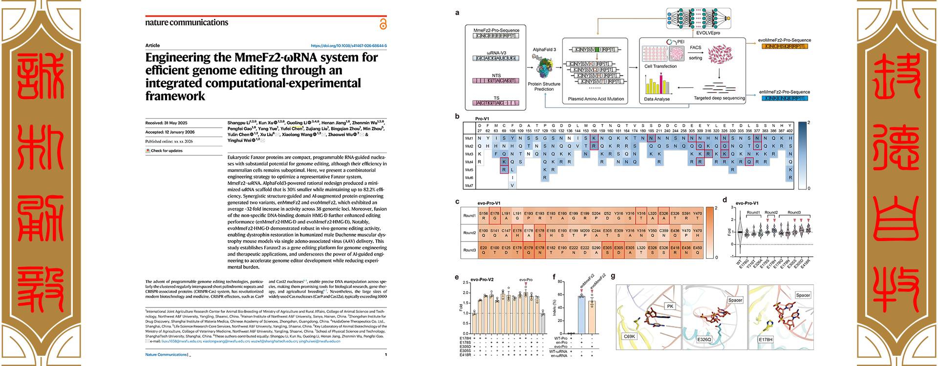 徐坤,男,遗传学博士,副教授,博导;陕西高校未来技术学院建设工作委员会委员,西北农林科技大学-动物科技学院-羊遗传改良与生物育种创新团队、动物生化与分子生物学教研室骨干成员。主要从事动物基因编辑与分子设计育种、微生物基因编辑与合成生物学等方面的教学和科研工作。是最早从事基因编辑技术开发的研究者之一,曾首次报道了源于嗜热链球菌的CRISPR/St3Cas9系统,并相继开发了系列基因编辑工具活性报告技术、供体适配基因编辑系统等动物和酵母基因编辑配套技术。目前致力于糖基化酶碱基编辑器(gBEs)、OMEGA/Fanzor和TIGR/Tas等新型基因编辑工具的优化提升及应用研究。累计在《Nature Chemical Biology》、《Science Advances》、《Nature Communications》、《Trends in Biotechnology》、《Genome Biology》、《Cellular and Molecular Life Sciences》和《生物工程学报》、《遗传》等国内外期刊发表科研论著75篇,被引1187次、H指数18、i10指数26 (谷歌学术,截至2025.12)。担任《BioDesign Rearch》和《生物工程学报》青年编委,《Science China-Life Sciences》、《Nucleic Acids Research》、《Advanced Science》、《Protein & Cell》、《Chemical Engineering Journal》和《遗传》等杂志审稿人。曾获第十三届大北农科技奖二等奖(2/8),陕西首届高校课堂教学创新大赛三等奖(1/1),西北农林科技大学教学成果一等奖一项(3/7)、二等奖两项(1/5,2/4)。负责西北农林科技大学基因编辑科教平台(NWAFU-GEST)建设和运行,开设并主讲本科生《分子生物学》、《基因编辑技术》和研究生《动物基因编辑原理和技术》、《基因编辑原理与技术-海南》等课程。